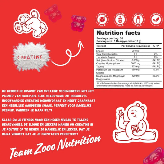 Suikervrije Beargymmies® Performance+ Creatine Gummies met Magnesium, Taurine & Kalium (Pre-order!)
